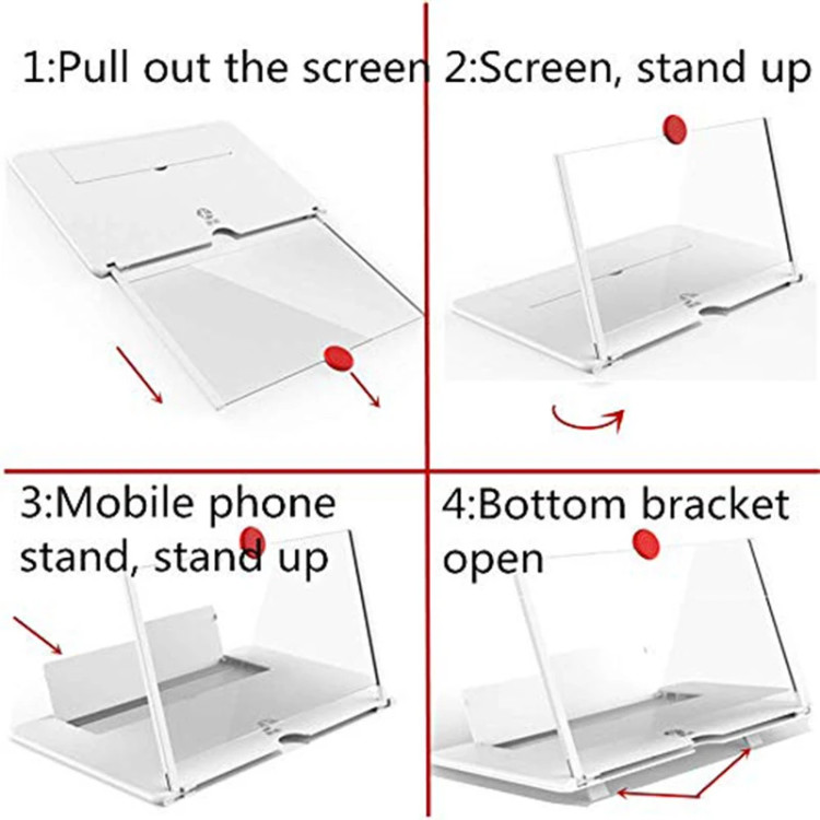 داکت بزرگنمایی تصویر موبایل دارای قاب یا پایه نگهدارنده با زاویه قابل تنظیم است که امکان تماشای راحت و با بهترین دید ممکن را فراهم میکند. طراحی ارگونومیک آن باعث میشود بتوانید زاویه دید را مطابق نیاز خود تغییر دهید و تجربهای شخصیسازیشده داشته باشید.