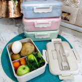 این ظرف غذا و لانچ باکس از الیاف بامبو و پلاستیک از نوع پلاستیک غیر سمی و آنتی باکتریال هستند. فاقد مواد سمی هستند قابل استفاده در مایکروفر و ماشین ظرفشویی و فریزر میباشند این ظرف ها آنتی باکتریال هستند و از خراب شدن غذای شما جلوگیری میکنند کاملا بدون نشتی و دارای طراحی زیبا و سبک هستند. درب ظرف واشر دارد که از نشت مواد غذایی جلوگیری میکند میتوانید به راحتی مایعات و سوپ را داخل ظرف نگه داری کنید مناسب محل کار مدرسه باشگاه و پیک نیک و ....