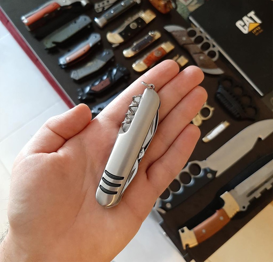 - ابزار 11 کاره شامل چاقو ، قیچی ، پیچ گوشتی ، درب باز کن ، انبر دستی ، چاقو اره ای و ...