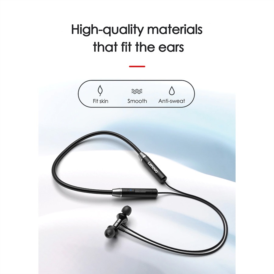 هندزفری بلوتوث گردنی Lenovo یک هندزفری بلوتوث گردنی میباشد که دارای کیفیت موسیقی و مکالمه بسیار خوب نسبت به قیمتش میباشد. در ضمن بسیار سبک و راحت مناسب استفاده طولانی مدت است. این هدفون گردنی از استاندارد ضد آب IPX5 برخوردار میباشد از اینرو یک هندزفری ورزشی نیز به حساب میآید. به معنای دیگر شما میتوانید از این هندزفری بلوتوث گردنی در ورزش یا زیر بارش باران نیز استفاده کنید. مخصوص علاقه مندان به ورزش که دوست دارند در حال دویدن و پیاده روی به موسیقی نیز گوش دهند. این هدفون به صورتی طراحی شده تا در استفاده دراز مدت گوشتان را اذیت نکند. یکی از دلایل این ویژگی وزن سبک این مدل است. نوار گردنی هدست که در پشت گردن قرار میگیرد که باعث میشود بدون ایجاد مزاحمت شما به کارهایتان برسید و موسیقی گوش دهید. روکش روی ایرفونهای هندزفری قابل جدا شدن است. این هدست مجهز به واحد درایور 10 میلی متر برای ایجاد باس عمیق و همچنین آواز نرم است. هدفون بی سیم لنوو دارای تراشه بلوتوثی نسخه 5.0 است که از طریق آن به گوشی، تبلت و یا لپ تاپ متصل میشود. برای این مدل بلوتوث نسخه 5.0 در نظر گرفته شده و برد بلوتوث این هدفون تا 10 متر محاسبه شده است. یک باتری 105 میلی آمپرساعت درون این هدست به کار رفته است که با یکبار شارژ می تواند 8 ساعت موزیک پخش کند. این هدست تا 120 ساعت نیز میتواند در حالت آماده به کار باشد. گفتنی است که در هنگام مکالمه هم تا 8 ساعت شارژ را نگه میدارد. یکی از دلایلی که این مدل را برای استفاده هنگام ورزش مناسب کرده، گواهی IPX5 است. این گواهی باعث شده تا این مدل نسبت به آب و رطوبت مقاوم باشد. این مدل به گردنی مجهز شده و این ویژگی باعث شده تا این هدفون از گوشتان نیافتد. هندزفری بلوتوث گردنی Lenovo صداهای موسیقی را در صورت استریو بودن برای شما stereo (دو کاناله) پخش میکند. در مجموع باید گفت صدای این هندزفری بلوتوث گردنی گرم و لذتبخش است.