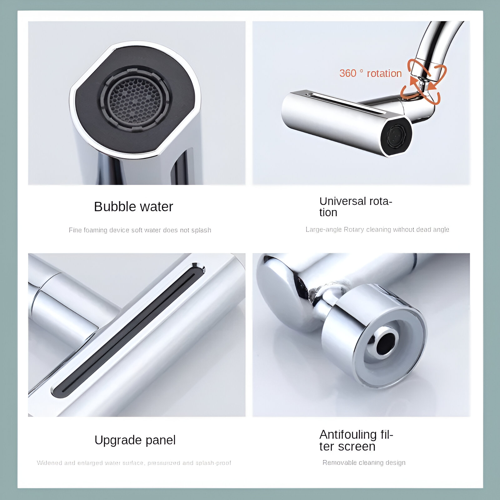- بازوهای قابل چرخش: سرشیر دارای 3 بازوی قابل چرخش است که امکان تنظیم 360 درجهای را فراهم میکنند. این ویژگی به شما اجازه میدهد تا آب را به هر زاویهای که نیاز دارید هدایت کنید و دسترسی به نقاط مختلف سینک را به راحتی ممکن میسازد.
