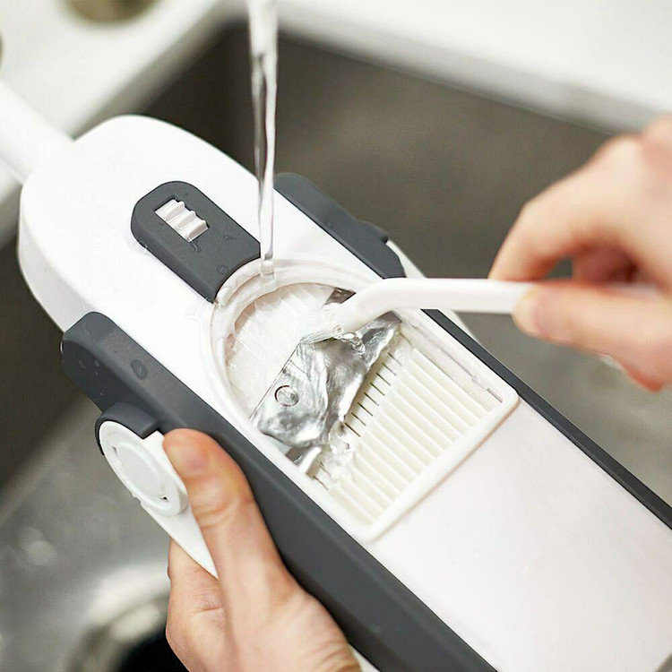تیغههای خردکن چندکاره ماندولین از فولاد ضدزنگ بسیار تیز ساخته شدهاند که قدرت برش بالا و دوام طولانی دارند. این تیغهها قادر به خردکردن و رندهکردن انواع سبزیجات، میوهها و حتی مواد غذایی سختتر هستند، بدون اینکه کیفیت برش کاهش یابد یا تیغهها کند شوند. همراه این دستگاه یک برس تمیزکننده مخصوص وجود دارد که پاکسازی تیغهها را بدون خطر بریدگی و به سادگی امکانپذیر میسازد، نکتهای مهم برای حفظ ایمنی و بهداشت.
