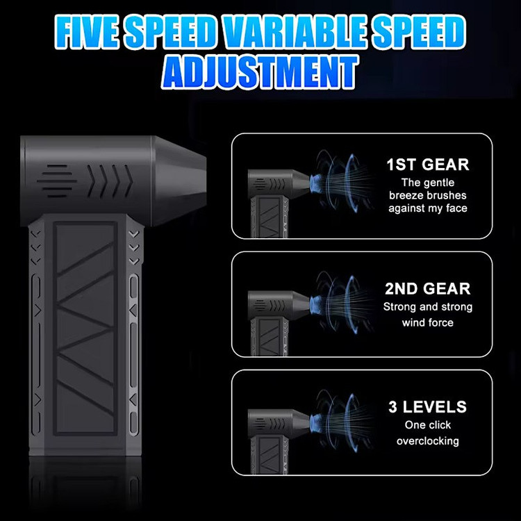 یکی از ویژگیهای برجسته این محصول، قابلیت تنظیم سرعت در سه سطح مختلف است. به این ترتیب، میتوانید شدت باد را طبق نیاز خود تنظیم کنید، از تمیزکاری دقیق و ظریف گرفته تا تهویه قدرتمند و سریع برای فضاهای بزرگتر. طراحی کوچک و جمعوجور این جت فن باعث میشود که به راحتی در کیف یا جیب خود حمل کنید، بدون اینکه حجم زیادی از فضای شما را اشغال کند.