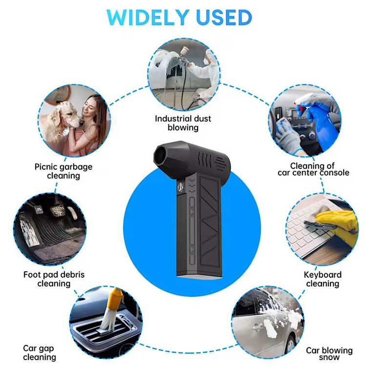 مینی جت فن توربو 3 حالته برای تمیزکاری در فضاهای کوچک و بزرگ به راحتی قابل استفاده است. اگر بخواهید ماشین خود را تمیز کنید، گرد و غبار و آلودگیهای ریز را از فضاهای حساس مانند کنسولهای ماشین، صفحه نمایش، یا کیبورد کامپیوتر پاک کنید، این محصول میتواند بهترین گزینه باشد. همچنین، برای نظافت و تهویه هوا در فضاهای تنگ و صعبالعبور یا حتی برای روشن کردن آتش هنگام کمپینگ یا سفرهای طبیعی، این جت فن عملکرد بینظیری دارد.