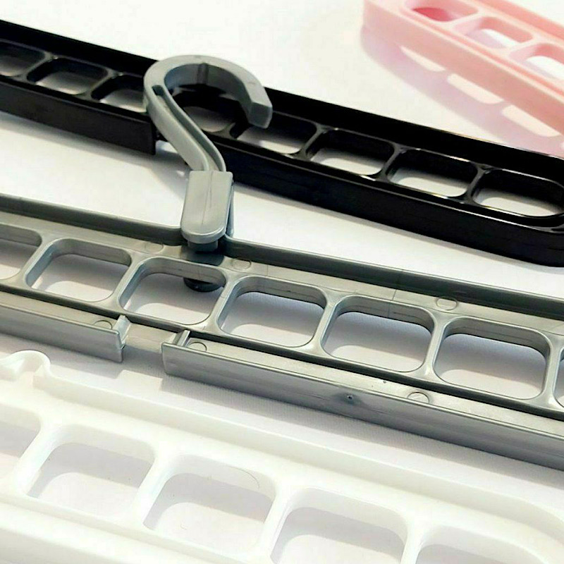 جنس بدنه از پلاستیک فشرده ABS ساخته شده که علاوه بر وزن سبک، مقاومت بالایی در برابر فشار و رطوبت دارد. همین ویژگی باعث میشود رختآویز جادویی، انتخابی ایدهآل برای استفاده در خانه، بوتیک یا مزون باشد.