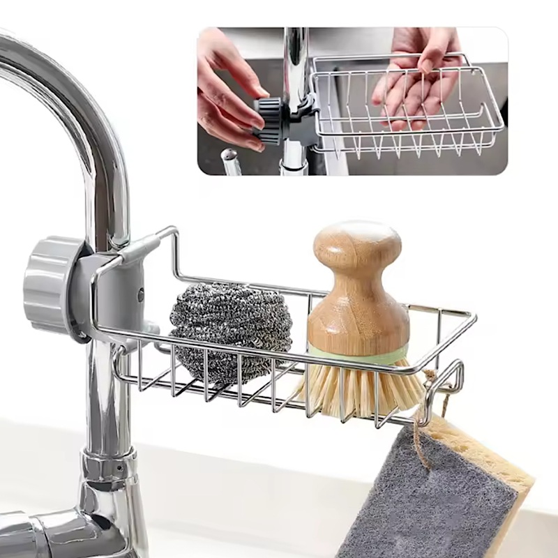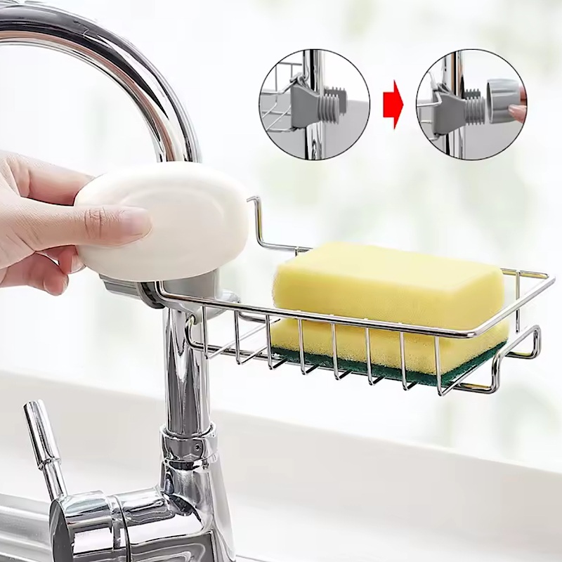 این محصول با طراحی هوشمندانه خود، بهگونهای ساخته شده که دقیقاً دور شیر آب قرار میگیرد و بدون اشغال فضای اضافی، امکان نگهداری اسفنج، اسکاج، برس شستوشو، صابون یا حتی بطری کوچک شامپو را فراهم میکند. دیگر نیازی نیست لبهی سینک یا وان را با وسایل مختلف پر کنید؛ همهچیز در جای خود، مرتب و قابل دسترس است.