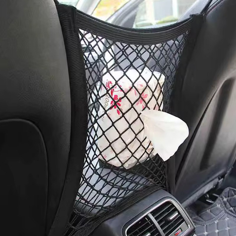 چهار قلاب بادوام در چهار گوشه توری تعبیه شده که اتصال کاملاً مطمئن و پایداری را فراهم میکند. این قلابها بهراحتی به میلههای پشتسری و قسمت زیر صندلی متصل میشوند و نصب محصول را به کاری سریع و بدون دردسر تبدیل میکنند؛ بدون نیاز به ابزار خاص یا تغییر در ساختار داخلی خودرو.