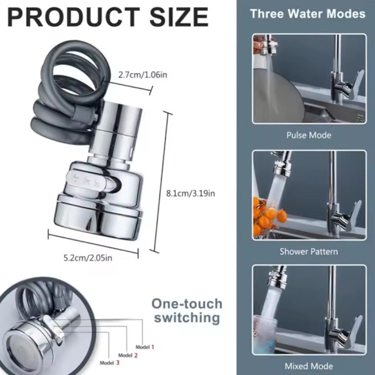 سر شیر شلنگ دار ظرفشویی و روشویی 3 حالته با طراحی مدرن و کاربردی خود، پاسخی است به تمام این نیازها. این وسیله بهسادگی روی شیر آب نصب میشود و امکان استفاده از سه حالت مختلف پاشش آب را فراهم میکند: