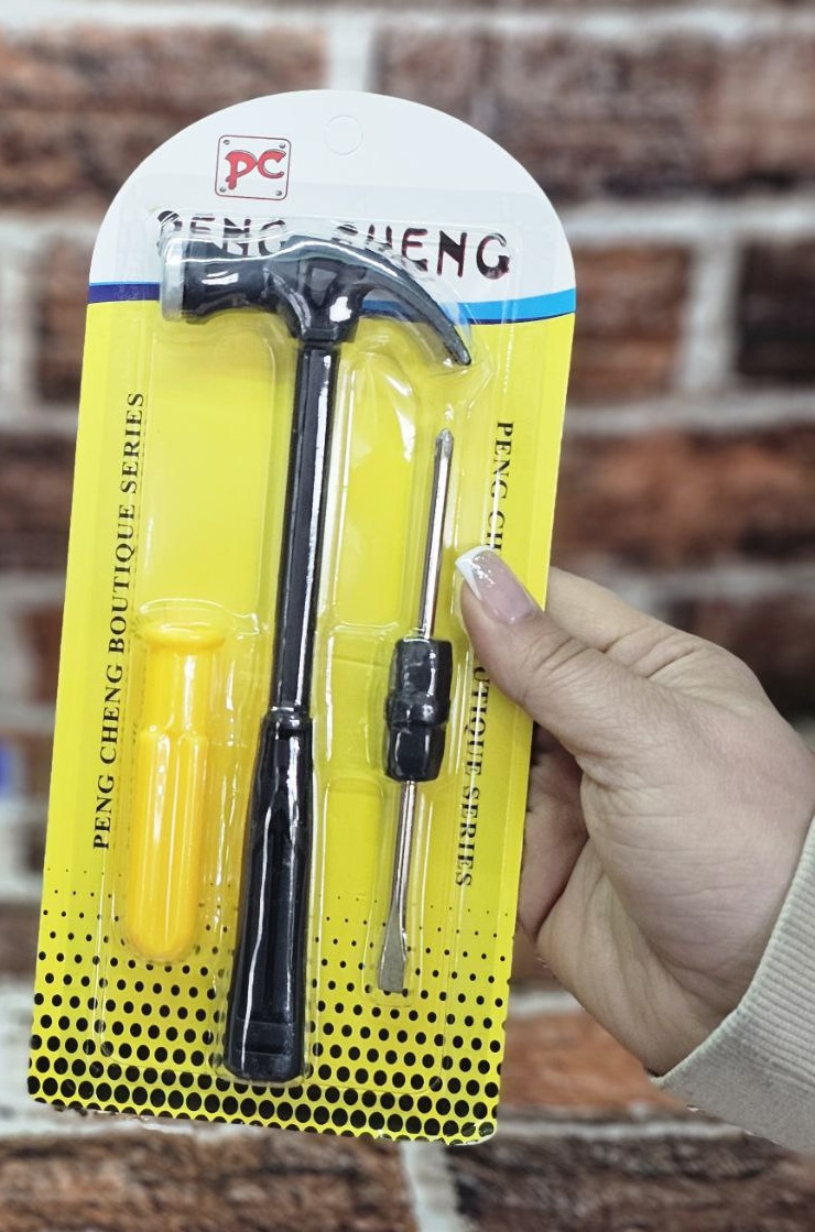 - اقلام داخل بسته چکش دستی سبک، پیچگوشتی دوسو، پیچگوشتی چهارسو، روکش یا نگهدارنده پلاستیکی